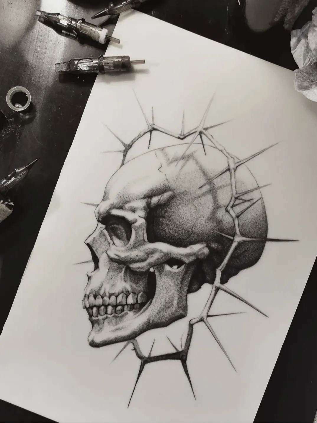 Praktyka na sztucznej skórze obejmuje również przenoszenie wzorów i korzystanie z szablonów. Trening odwzorowywania gotowych projektów pozwala ćwiczyć symetrię, proporcje oraz dokładność w detalach. Dzięki temu uczysz się planowania pracy i precyzyjnego nanoszenia wzorów, co jest niezbędne przy bardziej skomplikowanych tatuażach.